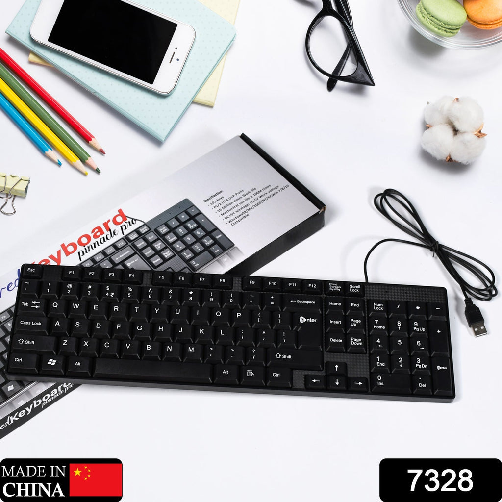 7328 Wired USB Keyboard 102 Keys, Ergonomic Portable Typewriter Keyboard for Home Office, Plug and Play